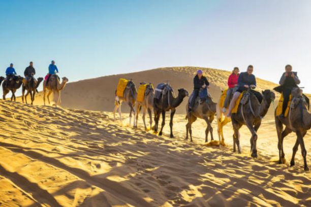 Embark on an unforgettable camel ride to a desert camp in Merzouga for an overnight stay, where you’ll experience the magic of the Sahara Desert. As the sun sets, casting golden light over the Erg Chebbi dunes, you’ll mount your camel and begin your journey into the heart of the desert. The gentle sway of the camel and the quiet surroundings create a sense of peace and connection to the vast landscape.