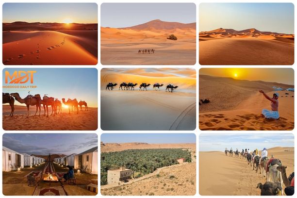 The route then crosses the high plains near Zaida before reaching Midelt, a mountain town where you stop for lunch and rest. In the afternoon, the journey becomes more dramatic as you descend into the Ziz Valley, offering panoramic views over palm groves, oasis villages, and rugged canyon landscapes. By late afternoon or early evening, you arrive in Merzouga, at the edge of the Sahara Desert, where the golden dunes create a striking first impression. Dinner and overnight stay take place near the dunes, allowing you to relax after a full day of scenic travel.