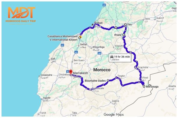 This 5 Day Morocco itinerary is designed to offer a meaningful introduction to the country’s most iconic regions within a short timeframe. Starting in Casablanca, the journey connects historic cities, scenic landscapes, and the Sahara Desert before concluding in Marrakech. Travelers experience guided cultural tours, comfortable private transportation, and authentic local encounters along the way. With a balanced pace and carefully planned route, this itinerary blends history, nature, and tradition, making it an ideal choice for those seeking a rich Moroccan experience in just five days.