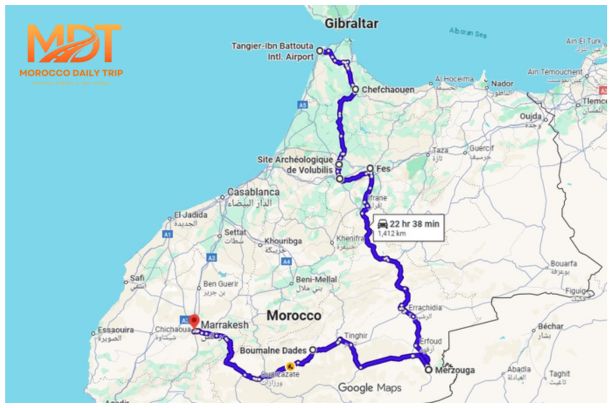 An 8 Days tour from Tangier to Marrakech offers a rich and well-paced journey through Morocco’s most iconic cities, landscapes, and cultural regions. Starting in the cosmopolitan port city of Tangier, the route travels south through imperial capitals, historic medinas, and scenic countryside before reaching the vibrant heart of Marrakech. Along the way, you experience a blend of coastal charm, royal history, traditional craftsmanship, and dramatic natural scenery, including mountain roads and ancient kasbahs.