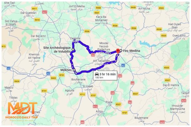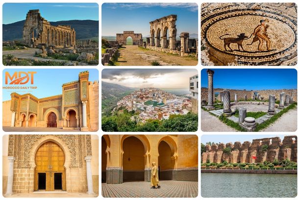 Embark on a fascinating day trip from Fes to the ancient Roman ruins of Volubilis and the historic city of Meknes. Just a short drive from Fes, you’ll first explore the UNESCO-listed ruins of Volubilis, where you can walk through the remnants of Roman baths, grand arches, and intricate mosaics that showcase the rich history of this once-thriving city. Afterward, head to Meknes, one of Morocco’s imperial cities. You’ll visit the impressive Bab Mansour Gate, explore the Meknes Medina, and see the Mausoleum of Moulay Ismail, all while learning about the city’s role in Moroccan history. With a blend of ancient ruins and vibrant culture, this day trip offers a perfect mix of history, architecture, and unforgettable sights.
