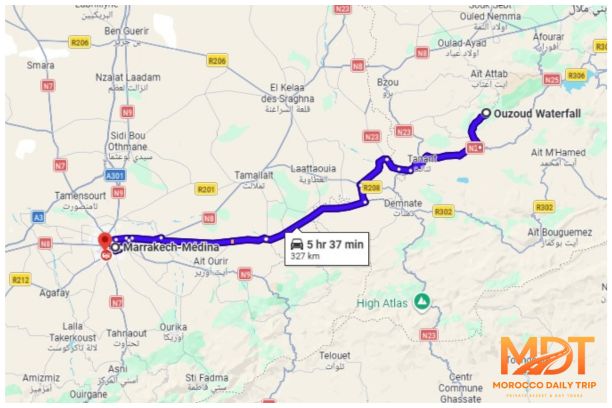 Full Day Trip:Marrakech » Ouzoud Waterfalls and back to Marrakech (≈ 327 km total drive)